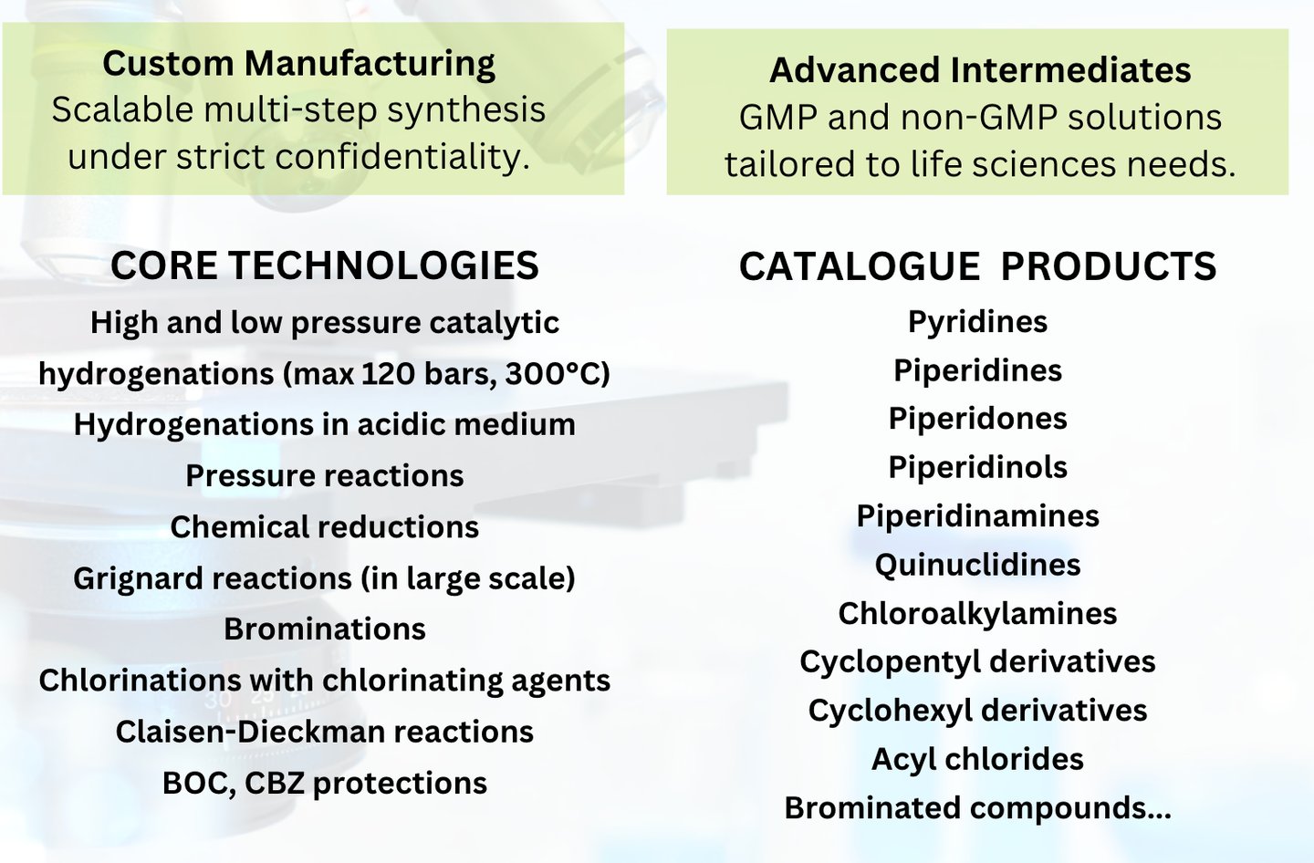 With our French Principal, INTEROR, a global CDMO, CHEMISTACKS delivers high-quality organic intermediates and fine chemicals for the pharma, specialtyand cosmetics industries.