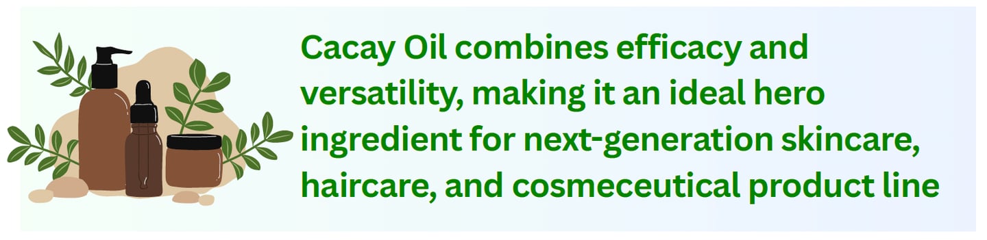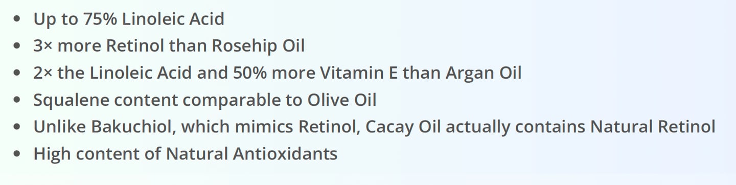 A sustainably sourced ingredient from Cacay Nut of the Amazon Forest, Cacay Oil is naturally rich in linoleic acid, antioxidants, and plant-derived retinol compounds.